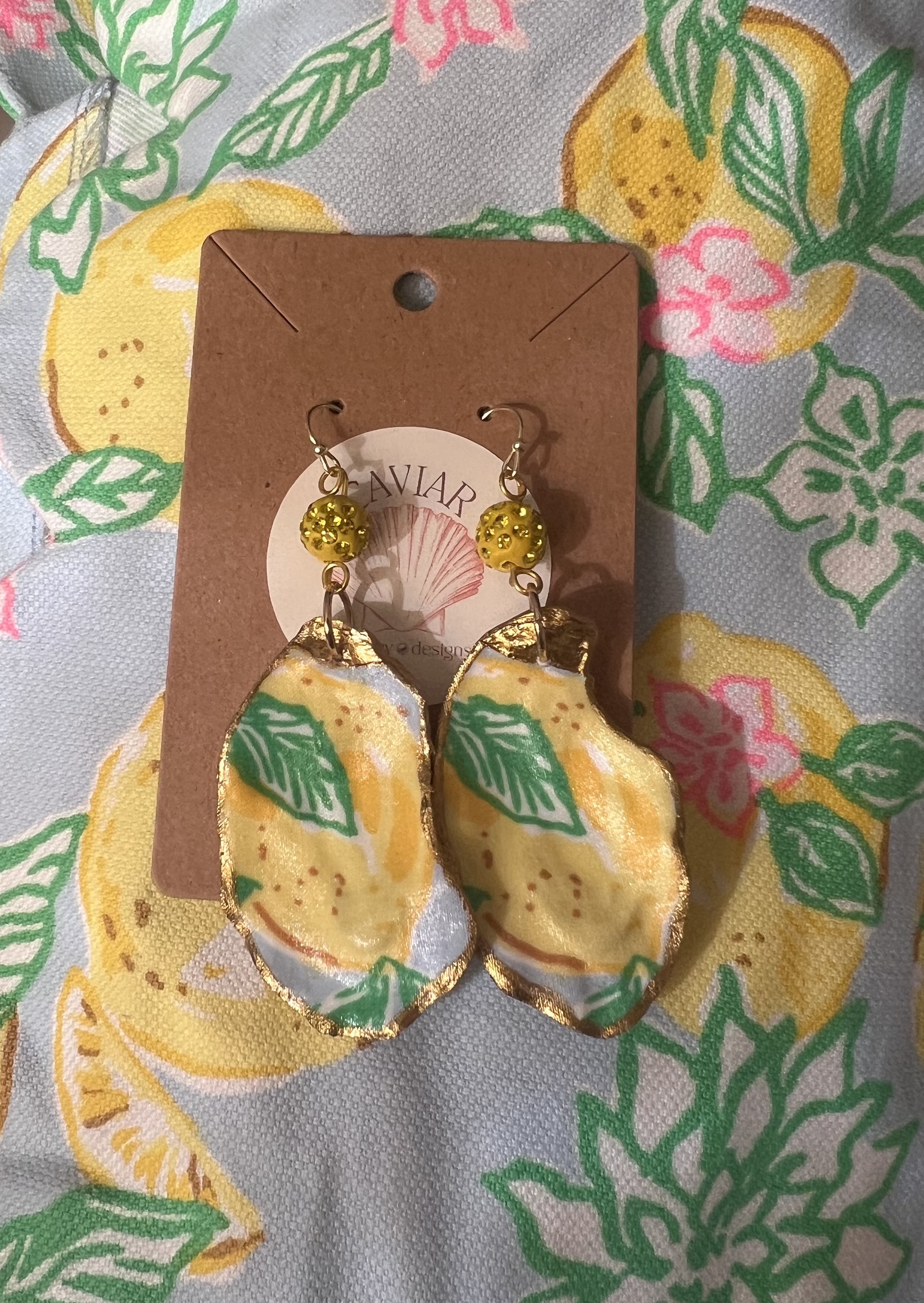 Bring a touch of coastal elegance to your style with these handmade dangle earrings, crafted from real oyster shells collected along Florida’s shores. Each shell is carefully cleaned, smoothed, and decoupaged with vibrant Lilly Pulitzer–inspired prints, making every pair a one-of-a-kind statement piece.